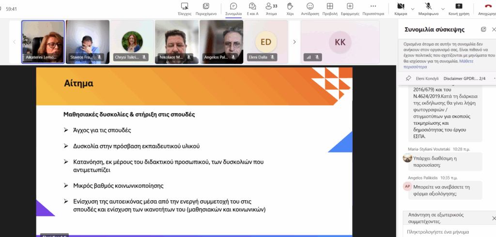 • Παρουσιάστηκε το παιδαγωγικό, θεσμικό και διοικητικό πλαίσιο