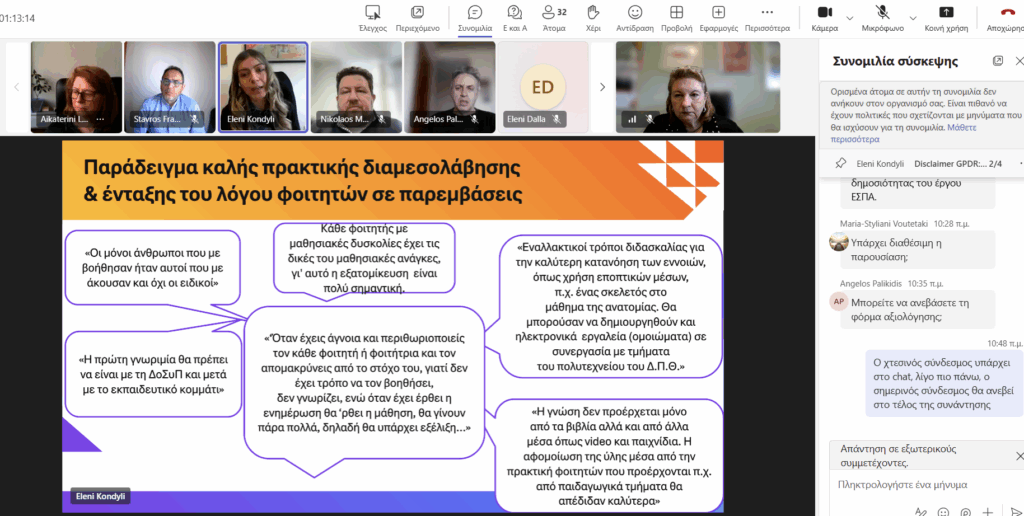 Η δυναμική συμμετοχή και ο γόνιμος διάλογος που αναπτύχθηκε επιβεβαιώνουν τη σημασία της συνεχούς επιμόρφωσης του διδακτικού προσωπικού σε ζητήματα ισότητας και συμπερίληψης.
